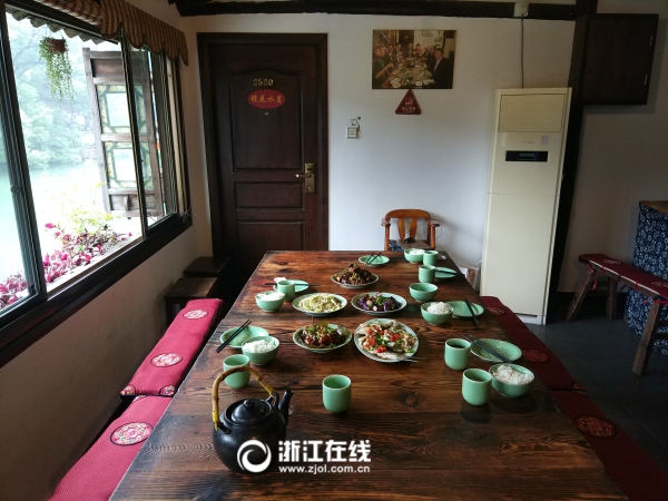 今天中午,老板和老板娘把兩張小木桌拼在一塊,燒了七八個拿手菜,每道菜都是去年大咖們愛吃的。浙江在線記者也嘗了幾道菜,“這道粽香東坡肉,用的是烏鎮(zhèn)土豬肉,如果丁磊他們來,還會換成網(wǎng)易養(yǎng)的豬肉,連豬皮和肥肉都是入口即溶……”老板娘說著說著,又亮出一套嶄新的青瓷餐具,與眾不同的是,每只碗碟底下都印著網(wǎng)易公司的出品標識。