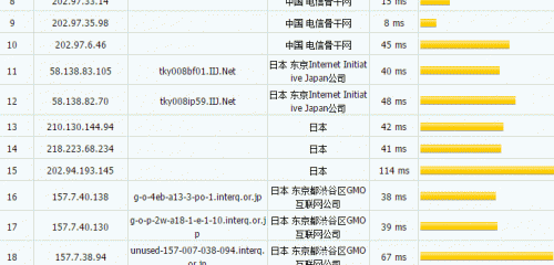 6、用路由追蹤工具查看國內(nèi)連接Conoha.jp VPS的線路,走的IIJ.net線路。(點擊放大)