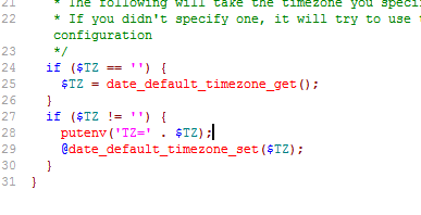 錯誤信息寫的相對比較明確,是set_time_zone.php這個PHP文件的第28行報錯。