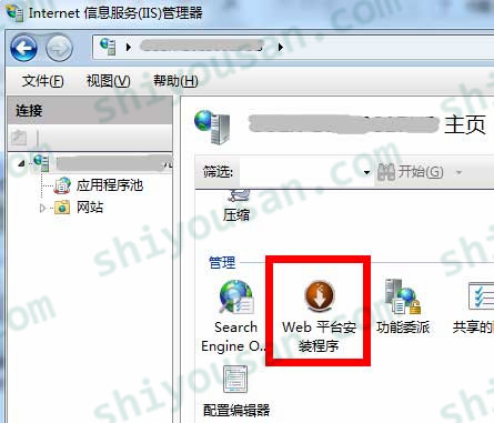 如果IIS上默認(rèn)有安裝Web平臺安裝程序,我們可以使用平臺自動安裝URL Rewrite重寫工具,打開IIS(Internet 信息服務(wù)管理器),在管理器主頁中找到管理項,打開Web平臺安裝程序,如下圖: