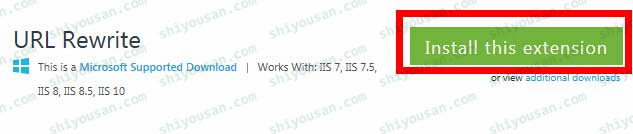 這里有兩種方式,一種是下載Web平臺安裝程序的插件包進(jìn)行在線安裝,點擊下載頁面中的Install this extension按鈕下載urlrewrite2.exe安裝程序,雙擊后會自動運行Web平臺安裝程序安裝URL重寫工具2.0。