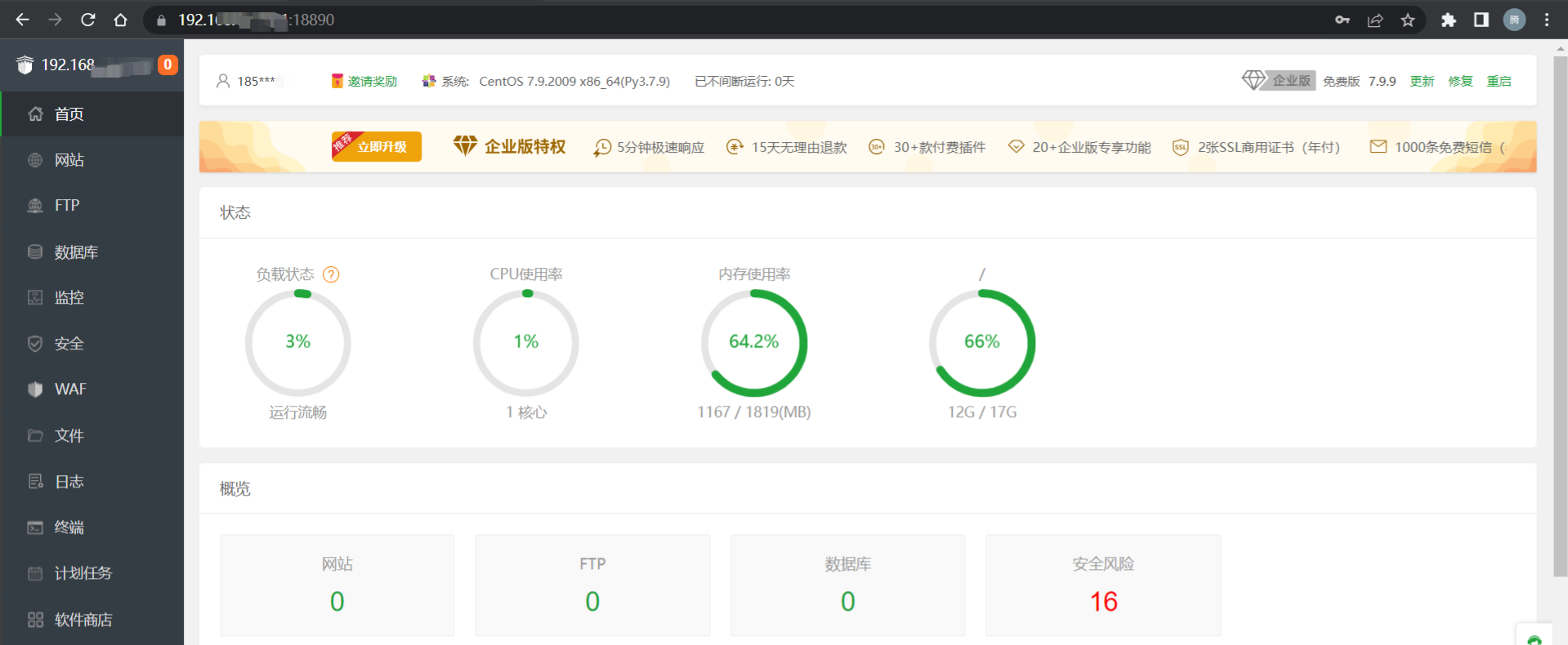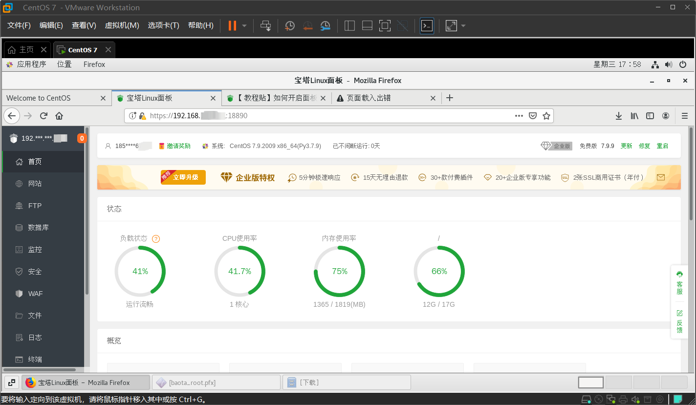 輸入內(nèi)網(wǎng)地址訪問: 本地VMware虛擬機安裝寶塔面板_本地虛擬機安裝的寶塔不是8888